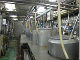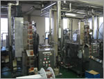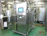 小袋充填の前に熱交換機で125℃〜130℃の1分間殺菌を行います。